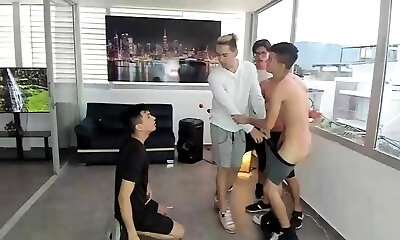 Four twinks enjoy fag group sex party